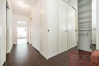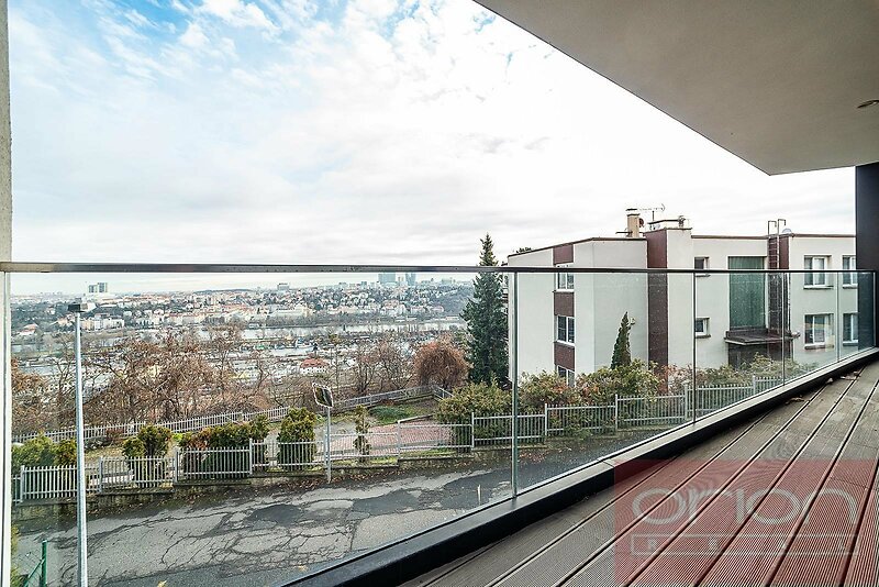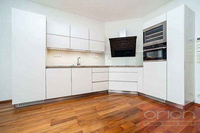 We offer for rent a spacious two bedroom - two bathroom apartment (96sqm) with a terrace (6sqm) located on the 1st floor of the modern residential building Villa City View in Prague 5 - Smíchov. The apartment offers an entrance hall with storage space, a large living room with a dining area and a fully fitted kitchen and access to the terrace with a beautiful view of the city, 2 bedrooms, of which the master bedroom has en-suite shower bathroom with a toilet, as well as the second bathroom with a bathtub and toilet. The bedrooms have built-in wardrobes, the living room is furnished with a designer shelving system. The modern kitchen is equipped with appliances, a Küppersbusch hob with the Vok system, a fridge with freezer, a dishwasher and an oven. The floors are high-quality parquets and tiles. The apartment is equipped with external blinds in all rooms, has a security door, an alarm and includes one garage space in the underground garage, one outdoor parking space and a large storage on the basement. The house is situated in a quiet area of Prague 5 - Smíchov, offering plenty of privacy and pleasant living. Excellent connections by car and public transport to the Anděl shopping centre, where there is a metro and tram station, to the city centre, to Václav Havel Airport, to international schools. Available from March 1. 2026, viewings by request.
