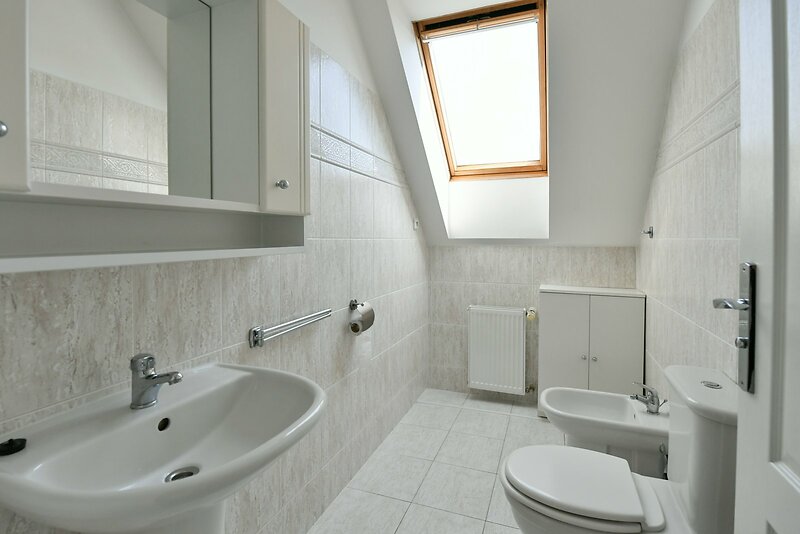 We offer for rent a spacious, unfurnished family house 8+1 with a well-kept garden in the popular location of Prague 6 - Nebušice, in close proximity to the ISP international school. The total living area of 251 sqm offers on the ground floor an entrance hall, a fully equipped kitchen, a dining room and a spacious living room with access to the terrace and garden of 858 sqm, a study and a guest room, a bathroom with a bathtub and shower, a separate toilet with a bidet. On the upper floor there are 5 bedrooms, 3 of which have access to the balcony, a storage room, one bathroom with a bathtub, a dryer and a washing machine and a separate toilet with a bidet. A spacious garage for 2 cars and additional parking spaces on the property. A private driveway ensures maximum privacy and complete peace. Attractive location in close proximity to the Šárecké údolí nature reserve. Excellent transport accessibility to the center of Prague and the airport, the Prague Ring Road and the connecting highway network. There is a bus stop within walking distance that goes to the Bořislavka metro station. Nebušice is a very popular residential area, especially for families with children.