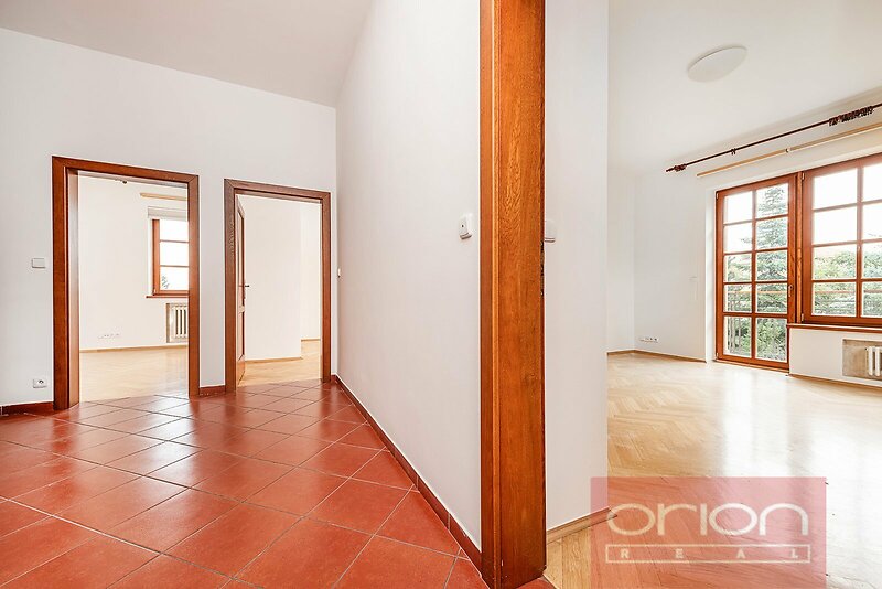 We offer for rent a spacious villa with a garden in a quiet residential area in Prague 6 - Břevnov. The total area of the house of 316 sqm offers on the ground floor an entrance hall, a fully equipped kitchen, a living room with a dining room and access to the terrace and garden, a bathroom with a shower and a separate toilet. On the 1st floor there are 3 bedrooms (2 of which have access to the balcony), a bathroom with a corner bath and shower and a separate toilet. The attic offers 2 bedrooms and a bathroom with a bath and toilet. In the basement there are storage spaces, a bathroom with a shower, sink and toilet, a utility room and a garage for two cars. The house is equipped with wardrobes, a washing machine, internet, satellite and an alarm. The floors are wooden parquet and tiles. On the lower floor there are outdoor electric blinds. Well kept garden of 403 sqm. The house is situated in a quiet location within walking distance of Ladronka Park, Hvězda Park or Břevnov Monastery. Beautiful location with lots of greenery in the area, 5 minutes walk from the tram stop with a quick connection to the Hradčanská metro station. All civic amenities in the vicinity: shops, schools and kindergartens, international schools, sports facilities, restaurants and cafes. Close connection to the city ring road and the highway network by car.
