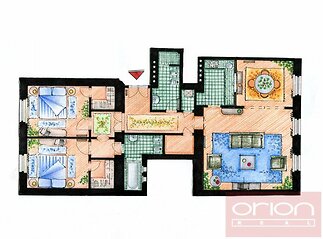 We offer for rent a tastefully furnished two bedrooms apartment on the 4th floor of a renovated building with an elevator in a sought-after location in Prague 2 - Nové Město. The apartment has a total area of 104 sqm and offers an entrance hall, living room with dining area, fully equipped kitchen, 2 bedrooms with dressing room, one bathroom with bathtub, toilet, bidet, second bathroom with shower, toilet, bidet, 2 chambers. The apartment is located just a few steps from Karlovo náměstí square, where there is a tram stop and a metro station, there are shops and restaurants nearby, as well as all civic amenities.