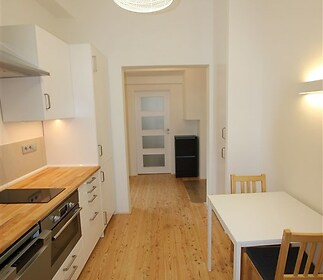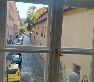 We offer for rent a very cozy and quiet 1+1 apartment (40 m2) after a complete reconstruction in a beautiful building right on Betlémské náměstí. Flat can be used as an office. The apartment is located on the 1st floor without an elevator and offers views of the square, Betlémská Street, and the towering Petřín Hill (impressive sunsets are visible from the window when the weather is nice). The apartment consists of a large room with vaulted ceilings, a small entrance hallway with a window, a fully equipped kitchen with all appliances (dishwasher, oven, refrigerator), and a bathroom featuring a modern shower, washing machine, and a partially separated toilet. Heating and hot water in the apartment are provided by a new Vaillant condensing gas boiler. The building is listed as an immovable cultural monument, as it originally consisted of two Gothic houses built in the 14th century, which were connected in the first half of the 17th century. The house has undergone a complete reconstruction in recent years. There is a communal balcony in front of the apartment. The staircase to the apartments is separated from the common areas by a bars controlled by an electronic chip, as are the large wooden doors to the house. The apartment is not suitable for Airbnb operators. The owner prefers only long-term rentals. All civic amenities (shops, restaurants) are within walking distance, including the metro station (Národní třída) and tram connections. Rent 24,000 + utilities and energy reserves 4,000 CZK/month. Available immediately.