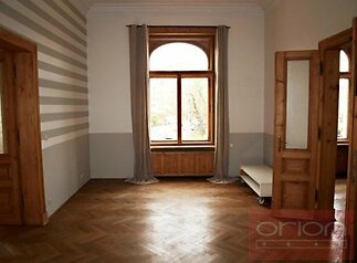 We offer for rent an atypical luxury three bedroom apartment on the 3rd floor of an Art Nouveau building with an elevator, located in an attractive residential district of Prague 2 - Vinohrady opposite the Vinohradsky Theatre building, just a few meters from Náměstí Míru. The partially furnished apartment with a total area of 171 sqm offers an entrance hall, a spacious living room with access to a balcony, a fully equipped kitchen, a dining room, 3 bedrooms, 2 bathrooms (one with a bathtub and one with a shower and toilet) and a storage room with a washing machine and dryer. The apartment features wooden parquet floors, marble tiles in the bathrooms, high ceilings, security doors, internet, satellite. The location has excellent transport accessibility, civic amenities, there are many restaurants, cafes, bistros, shops and other services in the vicinity. A few steps from the house are tram, bus and metro stations. Wenceslas Square or Riegrovy sady park are just a few minutes walk away. Rent 3200 EUR per month, possibility of renting a parking space in the underground garage for an extra 200 EUR per month. Available from January 1, 2026, viewings by request.