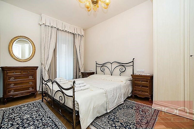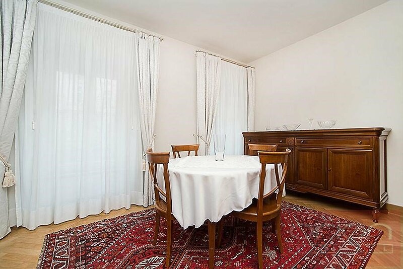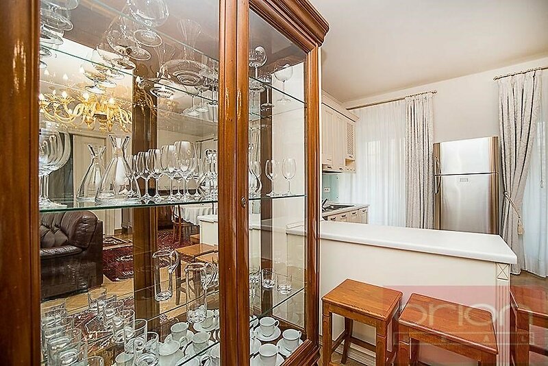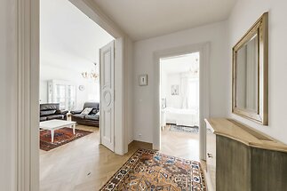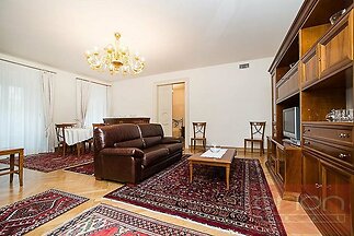 We offer for rent an exclusive fully furnished two bedroom apartment with an area of 96 sqm, situated on the 1st floor of a renovated apartment building with an elevator, private garden, heated swimming pool and underground garages in the sought-after location of Prague 2 - Vinohrady. The layout of the apartment includes an entrance hall, a spacious living room with a fully equipped kitchen (including appliances), two bedrooms, one bathroom with a bathtub, sink and toilet and a guest toilets. The apartment is located in a very attractive location in Prague's Vinohrady, with excellent civic amenities and excellent transport accessibility - metro stations and tram stops are just a few steps from the house, a bus stop right in front of the house. The location offers a wide range of services - restaurants, cafes, shops, cultural facilities and schools. The popular Riegrovy sady park and Wenceslas Square are within walking distance. Possibility to rent a parking space in the underground garage from 200 EUR + VAT/month.