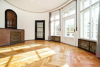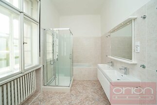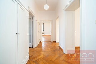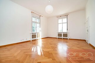 We offer for rent an exclusive unfurnished 4-bedroom apartment with a total area of 274 sqm and a terrace 26 sqm, situated on the 1st floor of a fully renovated representative Neo-Baroque villa in a prestigious residential area of Prague 6 - Střešovice The apartment features an entrance hall, a spacious reception room with access to a large terrace overlooking a well-maintained garden, a generous living room with dining area, a fully fitted kitchen, four bedrooms, two bathrooms, a pantry, a laundry room with washing machine, and a guest toilet. Amenities include built-in storage, high stucco ceilings, a fireplace, washing machine, dryer, satellite TV connection, internet, security camera system, and gas heating. The floors are finished with wooden parquet and tiles. Two covered parking spaces are included in the rent. The landscaped garden is available for the tenant’s use. The location offers full civic amenities and excellent transport accessibility by public transport and car to the city center, the city ring road, and Václav Havel Airport Prague. The Dejvická metro station is within walking distance. International schools, shopping centers, shops, parks, and sports facilities for leisure activities are all nearby.