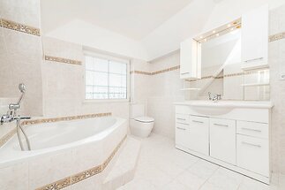We offer for rent an unfurnished, basement-equipped family house with a layout of 6+kk, situated on a 600 m² plot in the highly sought-after area of Prague 6 - Nebušice, close to the International School of Prague (ISP). The house has a total area of 300 m² and features an entrance hall, a living room connected to a fully equipped kitchen and dining area with access to a terrace, 5 bedrooms, 4 bathrooms, three additional rooms in the residential basement, and a laundry room with a washing machine and dryer.The property is equipped with built-in wardrobes, parquet and tiled floors, an alarm system, and internet connection. A well-maintained garden and a garage for two cars are also available. Within walking distance, there is a supermarket, restaurants, a bistro, primary and kindergarten schools, a medical center, a sports hall, and a tennis center, as well as the Divoká Šárka nature reserve. Additional full amenities can be found in the nearby center of Dejvice. The location offers excellent transport accessibility by public transport and car to the city center and the airport. The Bořislavka metro and tram station is just an 8-minute drive away.