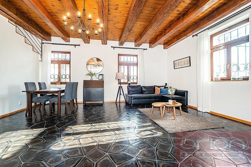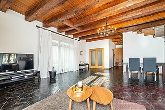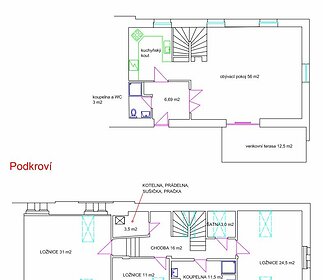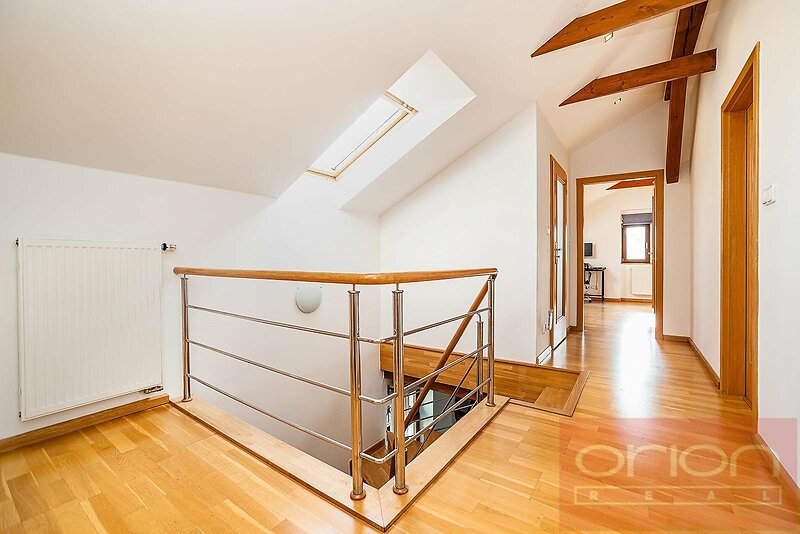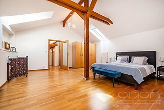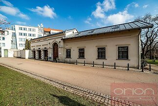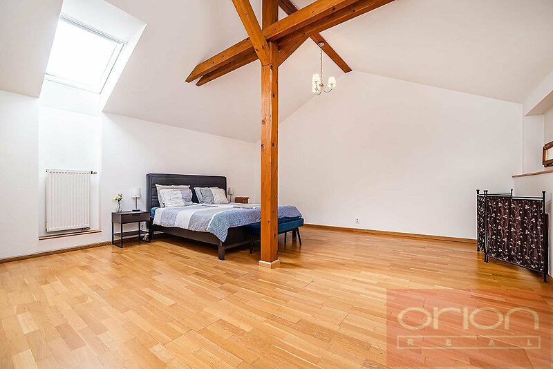 We offer for rent an unique spacious duplex apartment of 170 sqm with a terrace, and a shared garden with the character of a family house in the sought-after location of Prague 2 - Vinohrady. The unfurnished apartment offers on the ground floor an entrance hall with a built-in wardrobe, a spacious living room (56 sqm) with a dining room with access to the terrace and a fully equipped kitchen, a bathroom with a shower and a toilet. On the first floor there are 3 bedrooms, a bathroom with a shower, a bathtub and a toilet, a dressing room, a laundry room with a dryer and a washing machine. The apartment is equipped with SAT, internet, a gas boiler, the floor on the ground floor and the bathroom has underfloor heating. Camera system around the building. There is an English primary school and kindergarten nearby. The apartment is located in a quiet location directly in the Gröbovka park. Location with all civic amenities, shops, restaurants, cafes. Excellent transport accessibility by car and public transport, just a few minutes walk to the tram station or the Náměstí Míru metro station.