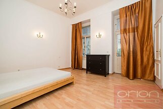We offer for rent this bright and generously sized one-bedroom apartment (87 sqm) with a balcony, located on the 1st floor of a well-maintained building with an elevator, in one of Prague’s most popular neighborhoods - Prague 2, Vinohrady, just a one-minute walk from square náměstí Míru. The apartment offers a well-designed layout featuring an entrance hall, a spacious open-plan living area with a dining space and fully equipped kitchen, and a comfortable bedroom with a balcony facing a quiet courtyard, ensuring peace and privacy. The bathroom includes a bathtub and toilet. The interior combines comfort and practicality. The apartment is furnished with a dining table and chairs, sofa, bed, wardrobes, washing machine, and a gas boiler providing heating and hot water. Classic parquet flooring adds elegance to the interior. Vinohrady is one of the most prestigious residential areas in Prague, offering excellent amenities, stylish cafés, restaurants, local shops, and beautiful parks such as Riegrovy sady and Havlíčkovy sady (Grébovka) within walking distance. Easy public transport connections - Náměstí Míru and I. P. Pavlova metro and tram stations are just moments away, with quick access to the city center and the main traffic routes. Wenceslav square is appr. 5 minutes on foot. Parking space available for rent for an additional fee. Available from March 1, 2026. Viewings are possible now.