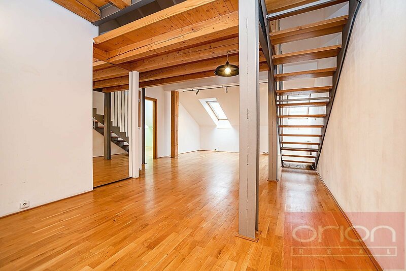 We offer for rent two bedroom - two bathroom duplex apartment of 114 sqm with a large terrace of 20 sqm in an apartment building with a lift in a popular location Prague 5 - Smíchov, within a short walk to Anděl metro station and Nový Smíchov shopping mall. The apartment offers an entry hall, a living room open with a dining area and a fully equipped kitchen (fridge with freezer, dishwasher, electric oven, ceramic hob), a bedroom, a bathroom with bathtub, guest toilet and a storage room with washing machine on the lower floor. The upper floor has access to a large terrace, there is a second bedroom, a gallery, a shower bathroom with a toilet, The floors are parquets and tiles. This nice apartment offers quiet living near the city center, just a few minutes walk from the Nový Smíchov shopping center, Anděl metro and tram station, restaurants, shops, farmers' markets on Náplavka river enbankment. For walks and sports activities, Petřínské sady, Kampa park, Children's Island with many playgrounds, Erpet sports center are nearby. Available to move in March 1, 2026, viewings now.