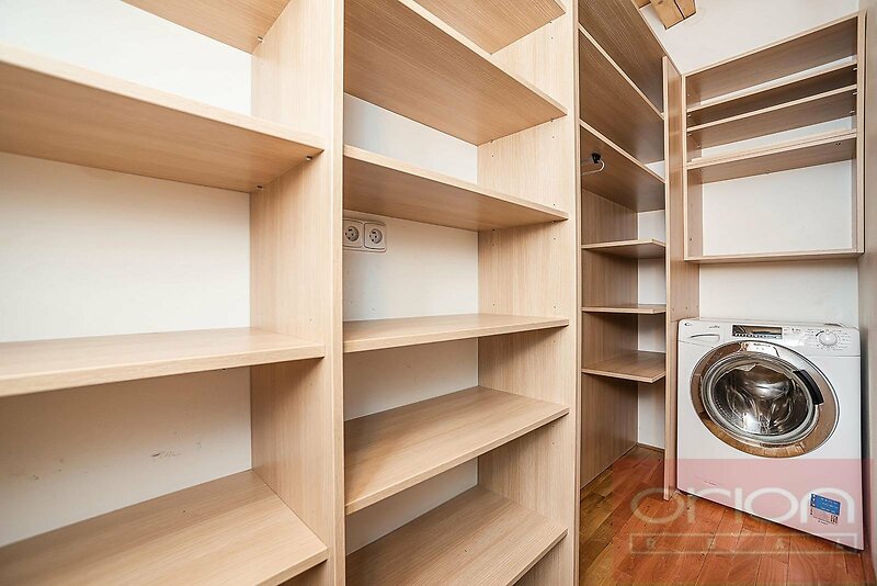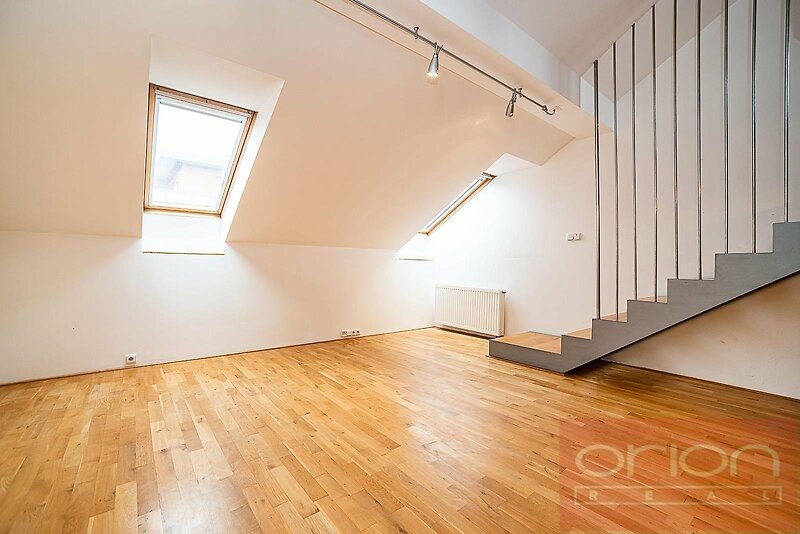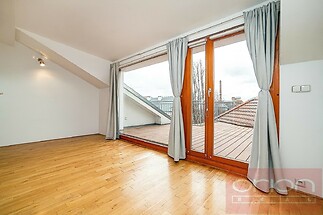 We offer for rent two bedroom - two bathroom duplex apartment of 114 sqm with a large terrace of 20 sqm in an apartment building with a lift in a popular location Prague 5 - Smíchov, within a short walk to Anděl metro station and Nový Smíchov shopping mall. The apartment offers an entry hall, a living room open with a dining area and a fully equipped kitchen (fridge with freezer, dishwasher, electric oven, ceramic hob), a bedroom, a bathroom with bathtub, guest toilet and a storage room with washing machine on the lower floor. The upper floor has access to a large terrace, there is a second bedroom, a gallery, a shower bathroom with a toilet, The floors are parquets and tiles. This nice apartment offers quiet living near the city center, just a few minutes walk from the Nový Smíchov shopping center, Anděl metro and tram station, restaurants, shops, farmers' markets on Náplavka river enbankment. For walks and sports activities, Petřínské sady, Kampa park, Children's Island with many playgrounds, Erpet sports center are nearby.