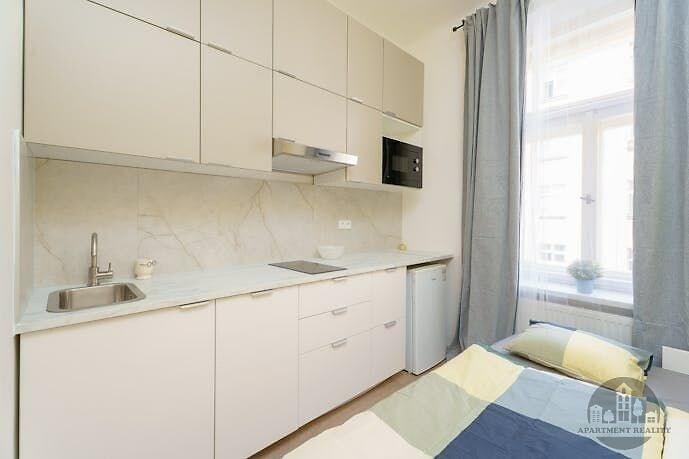 We offer you a cozy furnished apartment 1+kk with its own kitchen, toilet, and shower, fully equipped with a foldable double bed, wardrobe, folding armchairs, and a dining table. The kitchen has its own fridge, stove, and a washing machine is available. TV can be added but is not included in the price. The price is 21,900 CZK including high-speed Wi-Fi internet, energy, water, etc. The apartment is located near nám. Bratří Synků, which is only about 5 minutes from I.P. Pavlova and the business districts of Pankrác and Brumlovka. Medium-term rental available from 3 months. Available from November 1, 2025.